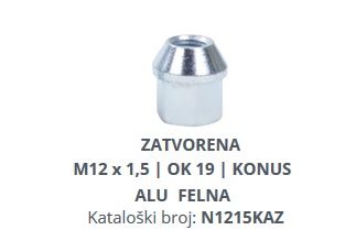 Matica točka M12x1.5 OK19 Konus Alu N1215KAZ 99M1215KAZ