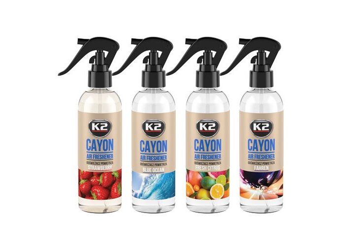 Miris - osveživač vazduha u spreju K2 Cayon M117FC je univerzalni osveživač vazduha u spreju. Može se upotrebljavati za osveženje unutrašnjosti vozila ili prostoruja. Kvalitetni miris ispunjavaju prostor intenzivnom i dugotrajno prijatnom aromom.