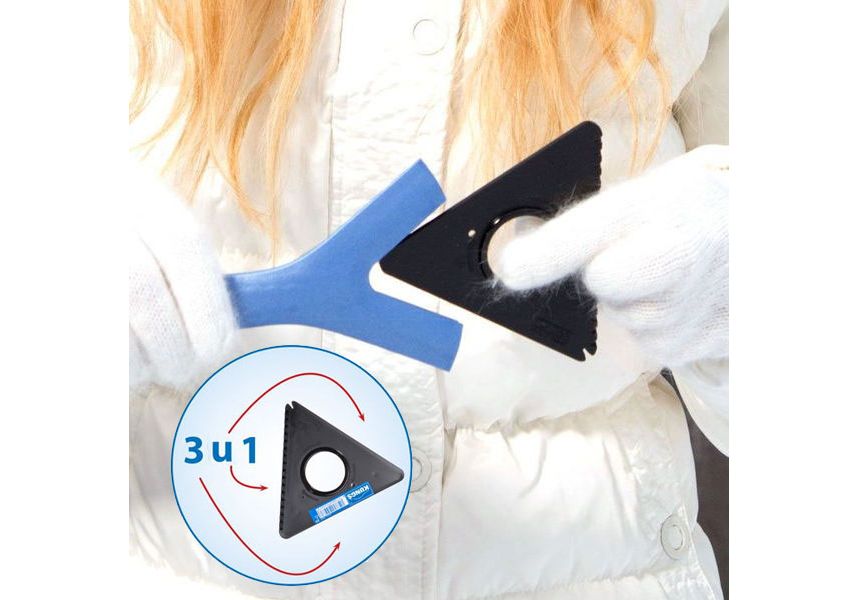 Jedinstveni trouglasti strugač leda ima tri strane oštre grebalice.