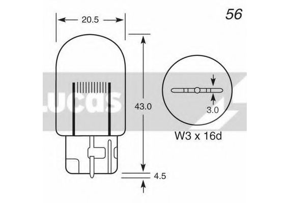 Sijalica 12V 21W W3x16Q LUCAS LLB582T - ubodna - jedno vlakno - 1987302251